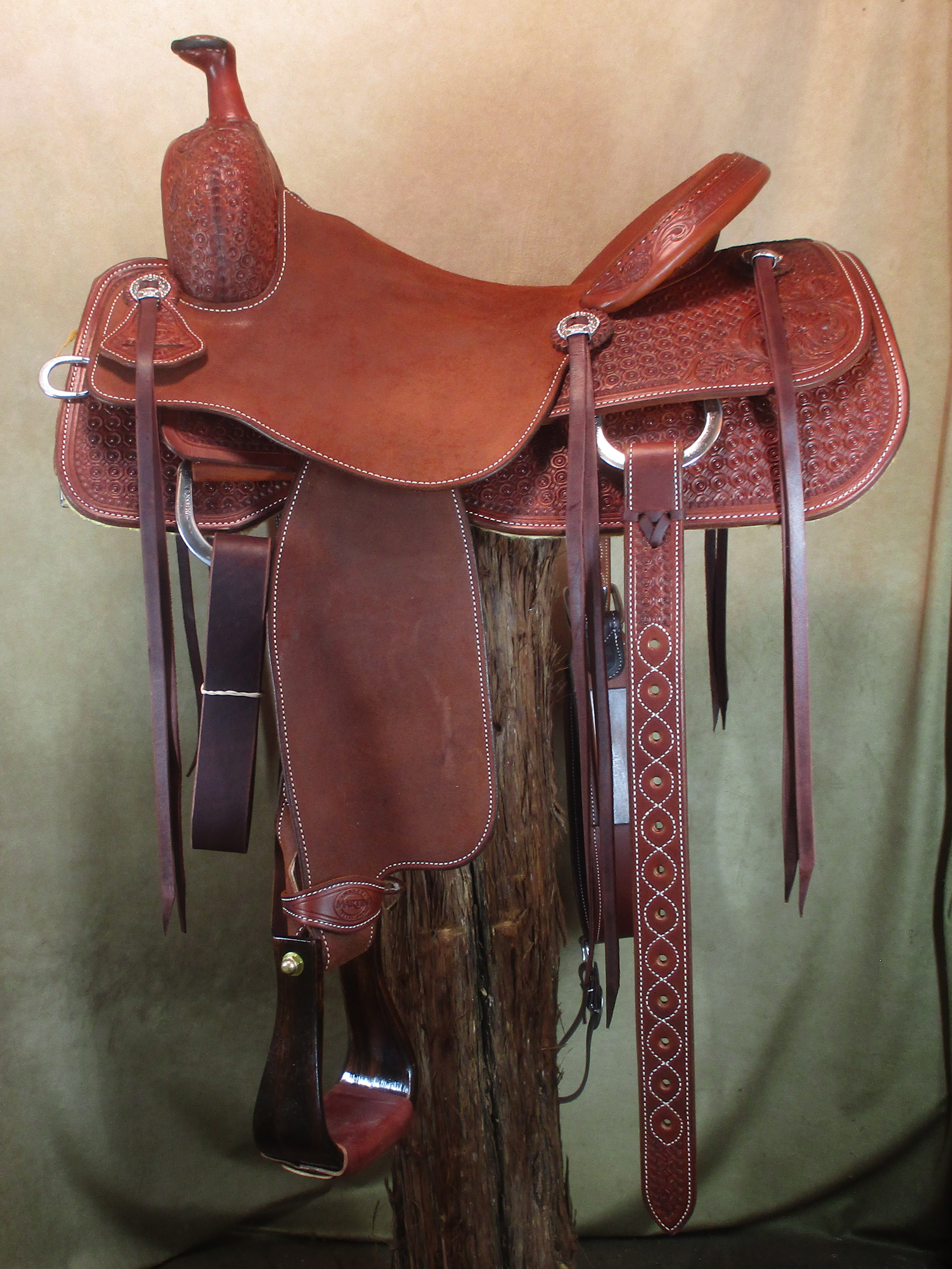 × Saddle will be added to your cart. * You may add this saddle to your cart for the next 60 minutes before expiration. × Ranch Cutter Thank You. Item has been added to your cart. Ranch Cutter: CUTTER RANCH CUTTER VIEW ALL Ranch Cutter Tree Size : 16" Serial # : 12631 $5,198.57 Designed for versatility and comfort with a classic cowboy style, the Ranch Cutter is a saddle you can ride all day. With a horn strong enough for roping and a narrow, comfortable seat, the Ranch Cutter is perfect in the arena or at home on the ranch. Saddle Options Saddle: 08 Ranch CutterGullet Size: 6.75"Seat Size: 16"Leather Type: ChestnutSeat Type: HardStirrup Type: Nettles Flat Bottom 3" - DarkTooling: 1/2 Wyoming Flower+BoomboxFront & Back Conchos: Scanalato with Keeper Slotted* Please call a Martin Saddlery Service Rep to order: 1(888) 308-2386 ALSO AVAILABLE Roper 13.5" $5,772.86 Add To Cart